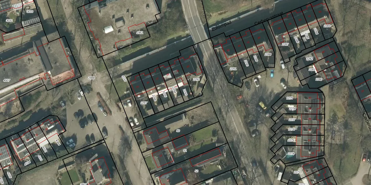 Gebruik de zoekbalk of klik op een perceel om informatie over het perceel te bekijken.