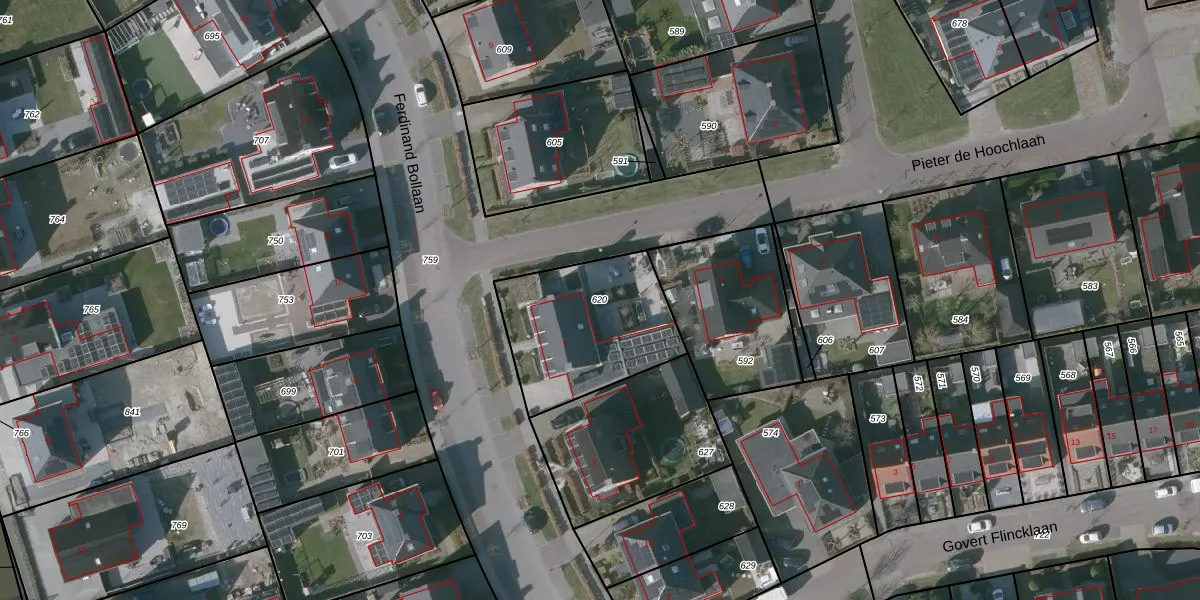 Gebruik de zoekbalk of klik op een perceel om informatie over het perceel te bekijken.