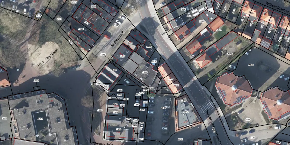 Gebruik de zoekbalk of klik op een perceel om informatie over het perceel te bekijken.