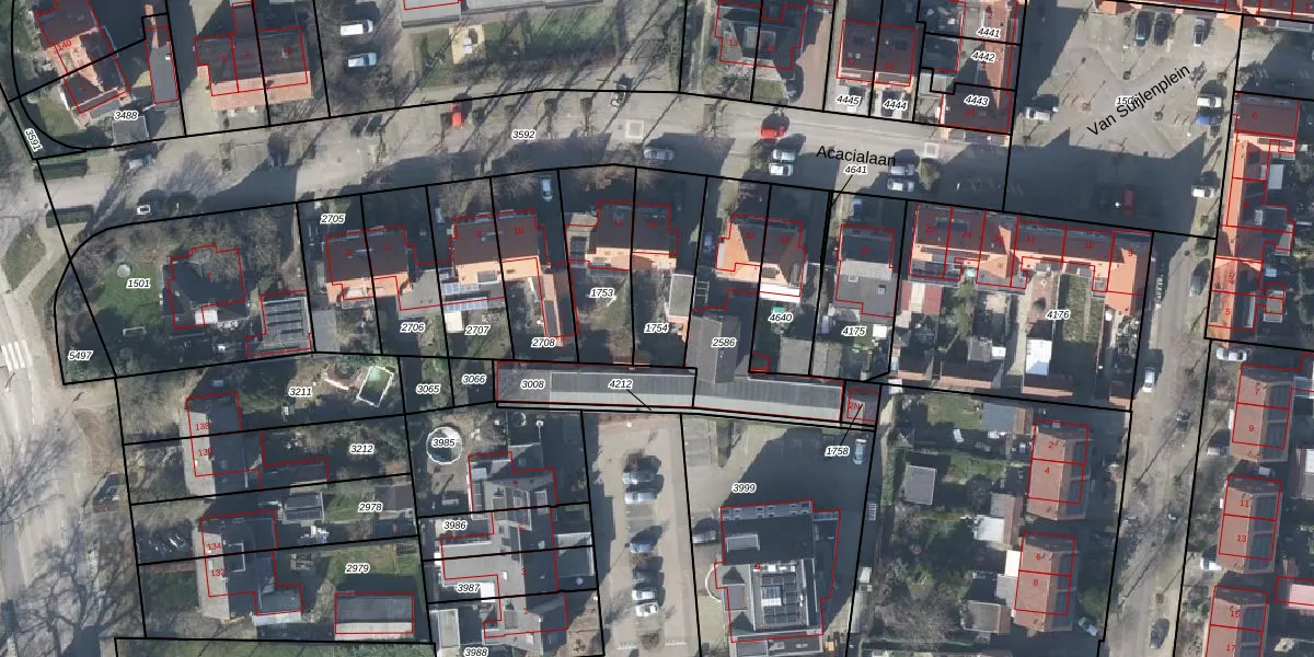 Gebruik de zoekbalk of klik op een perceel om informatie over het perceel te bekijken.