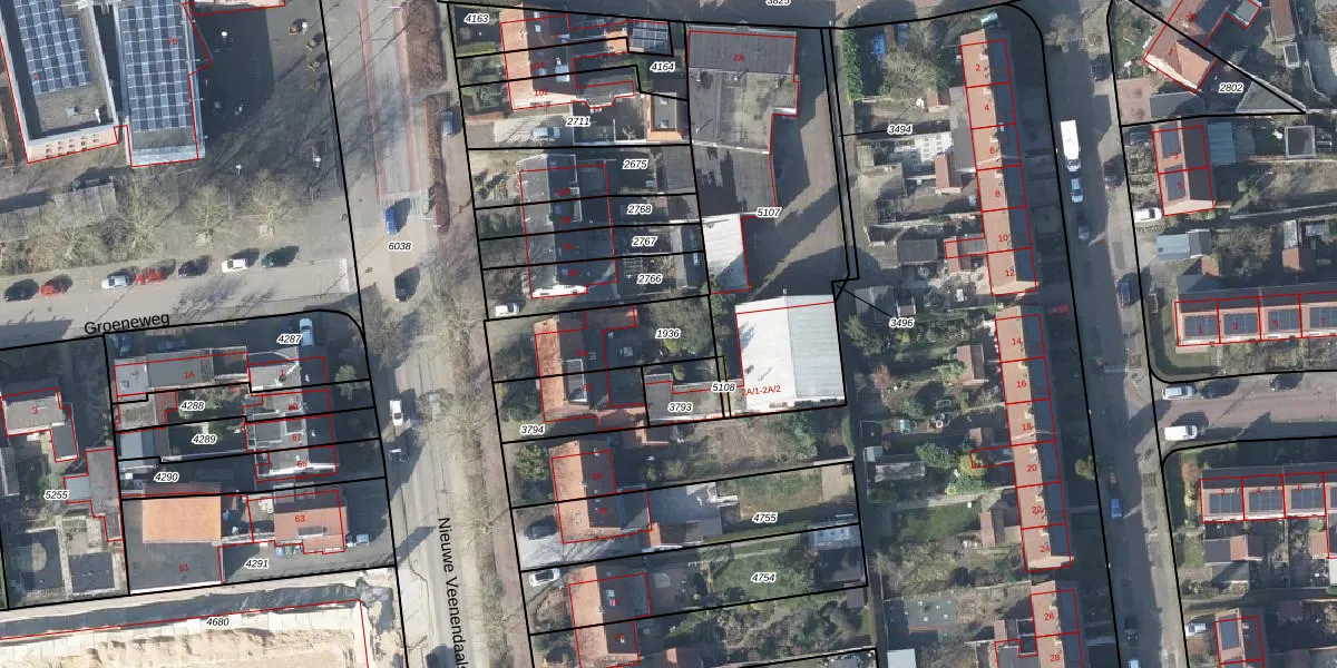 Gebruik de zoekbalk of klik op een perceel om informatie over het perceel te bekijken.