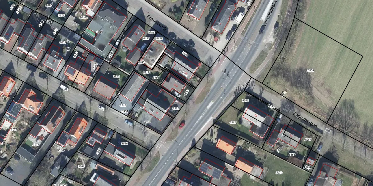 Gebruik de zoekbalk of klik op een perceel om informatie over het perceel te bekijken.