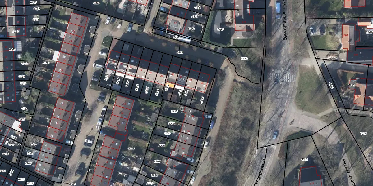 Gebruik de zoekbalk of klik op een perceel om informatie over het perceel te bekijken.