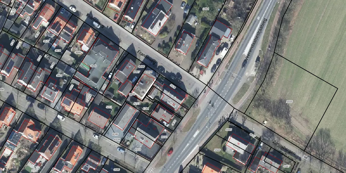 Gebruik de zoekbalk of klik op een perceel om informatie over het perceel te bekijken.