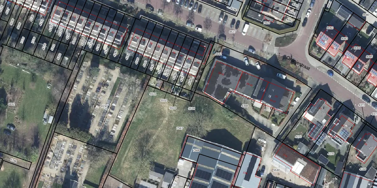 Gebruik de zoekbalk of klik op een perceel om informatie over het perceel te bekijken.