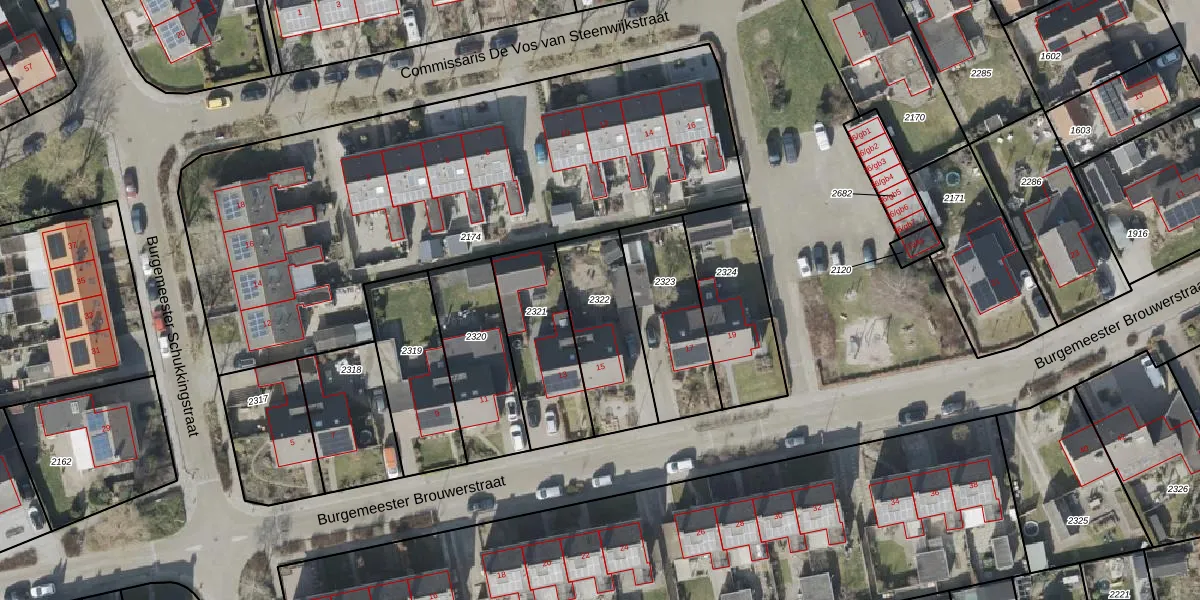 Gebruik de zoekbalk of klik op een perceel om informatie over het perceel te bekijken.