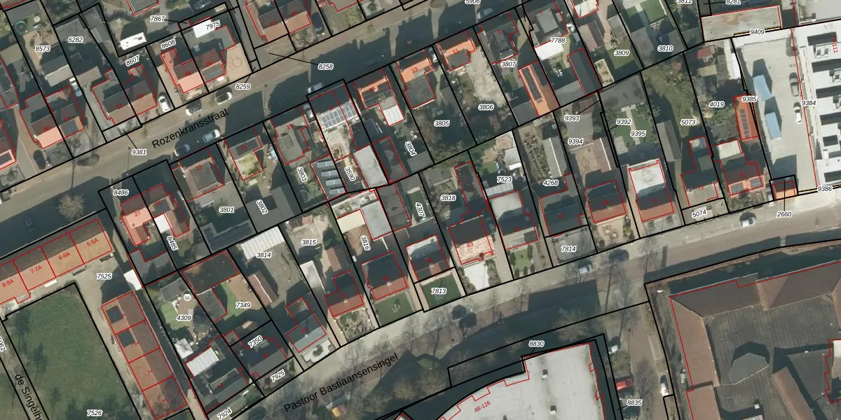 Gebruik de zoekbalk of klik op een perceel om informatie over het perceel te bekijken.