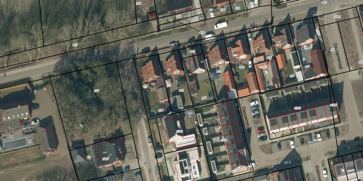 Gebruik de zoekbalk of klik op een perceel om informatie over het perceel te bekijken.