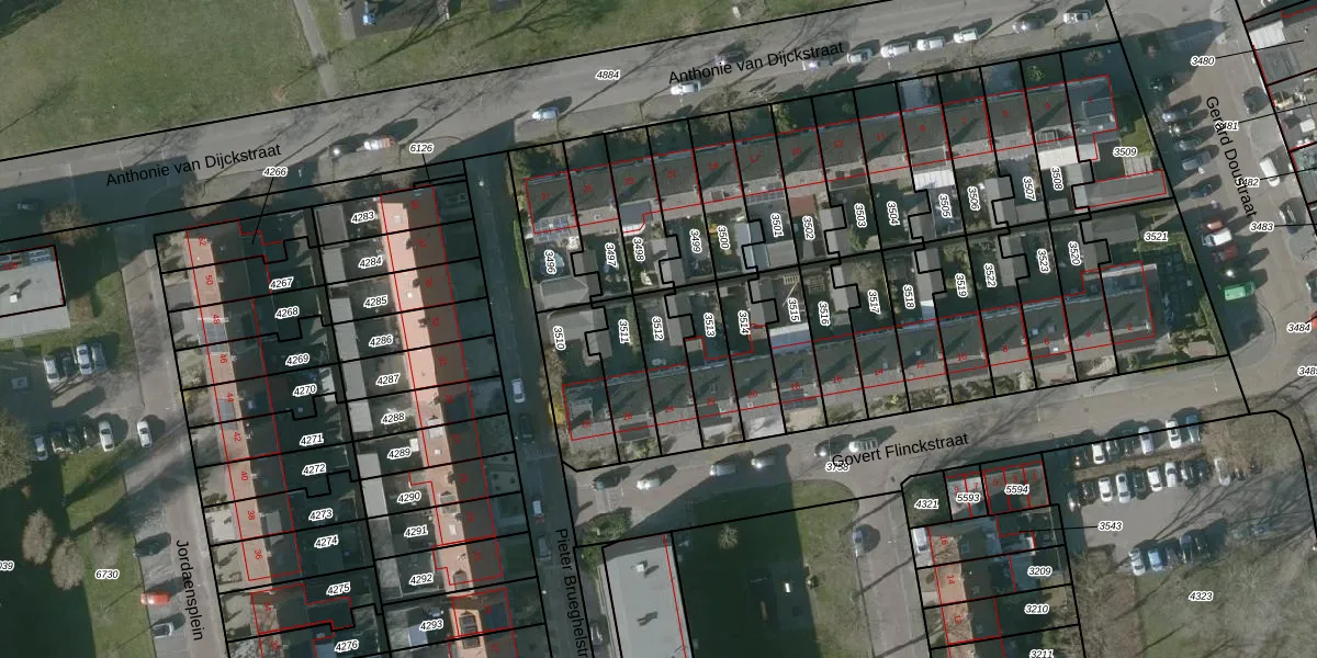 Gebruik de zoekbalk of klik op een perceel om informatie over het perceel te bekijken.