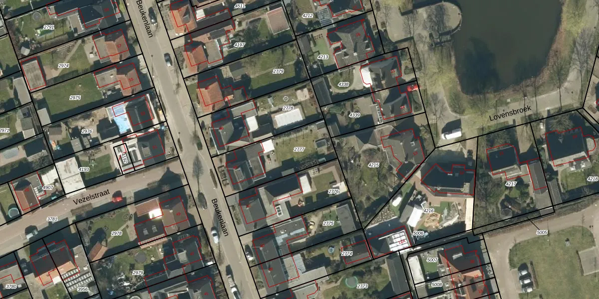 Gebruik de zoekbalk of klik op een perceel om informatie over het perceel te bekijken.
