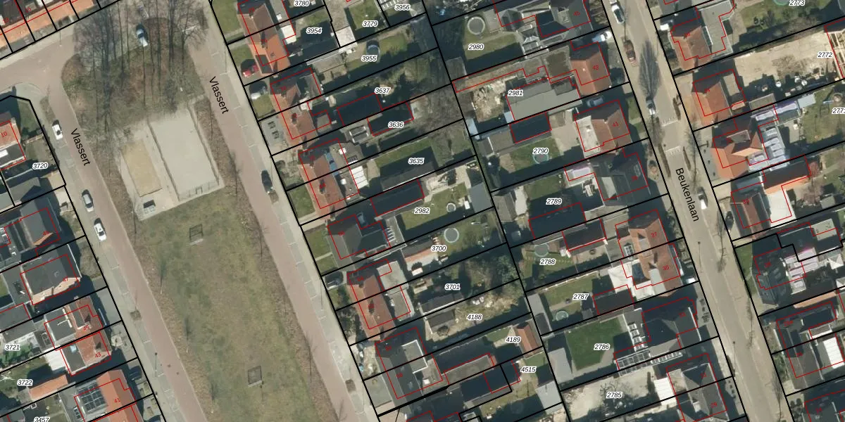 Gebruik de zoekbalk of klik op een perceel om informatie over het perceel te bekijken.