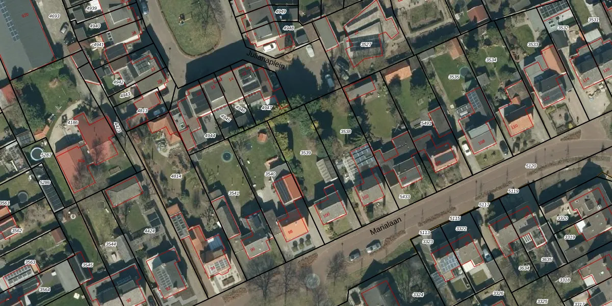 Gebruik de zoekbalk of klik op een perceel om informatie over het perceel te bekijken.