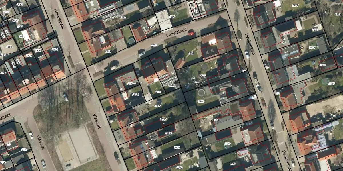 Gebruik de zoekbalk of klik op een perceel om informatie over het perceel te bekijken.