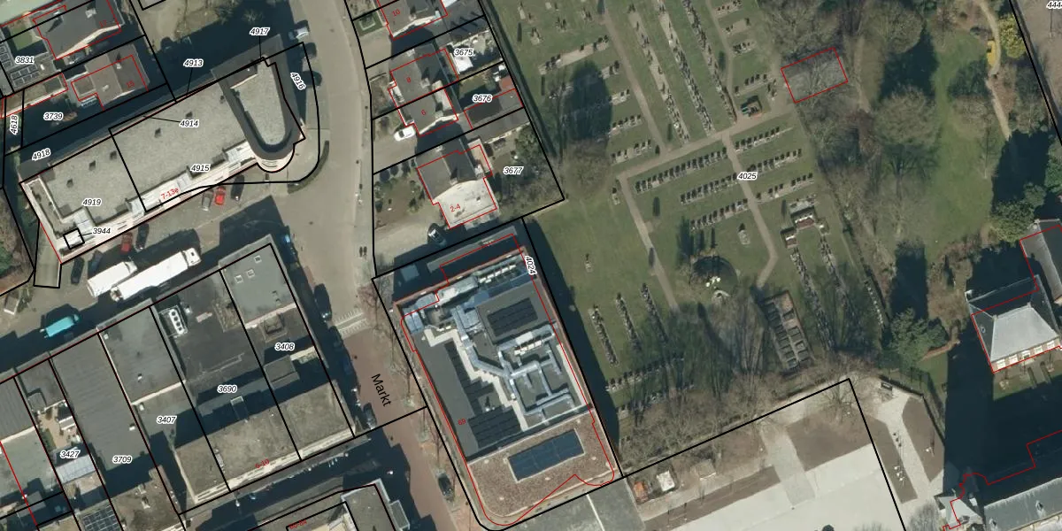 Gebruik de zoekbalk of klik op een perceel om informatie over het perceel te bekijken.