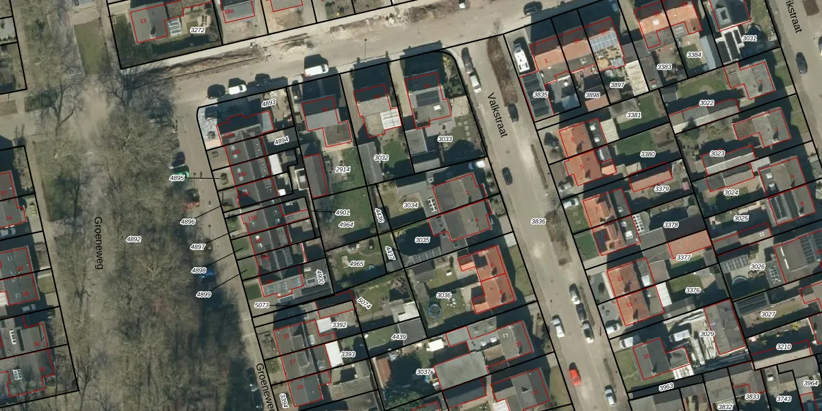 Gebruik de zoekbalk of klik op een perceel om informatie over het perceel te bekijken.