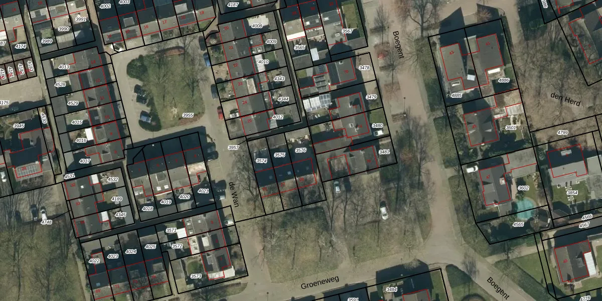 Gebruik de zoekbalk of klik op een perceel om informatie over het perceel te bekijken.