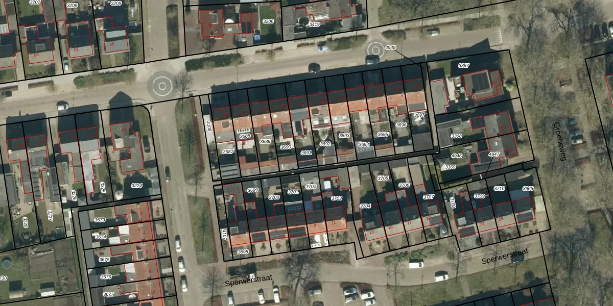 Gebruik de zoekbalk of klik op een perceel om informatie over het perceel te bekijken.