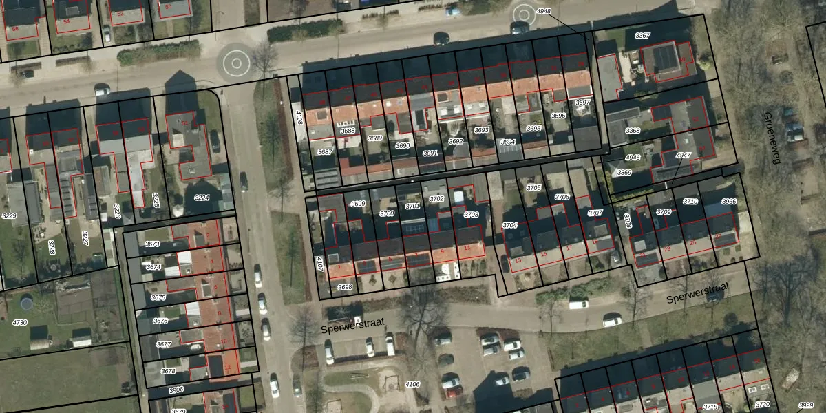 Gebruik de zoekbalk of klik op een perceel om informatie over het perceel te bekijken.