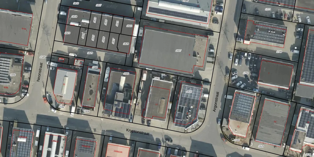 Gebruik de zoekbalk of klik op een perceel om informatie over het perceel te bekijken.