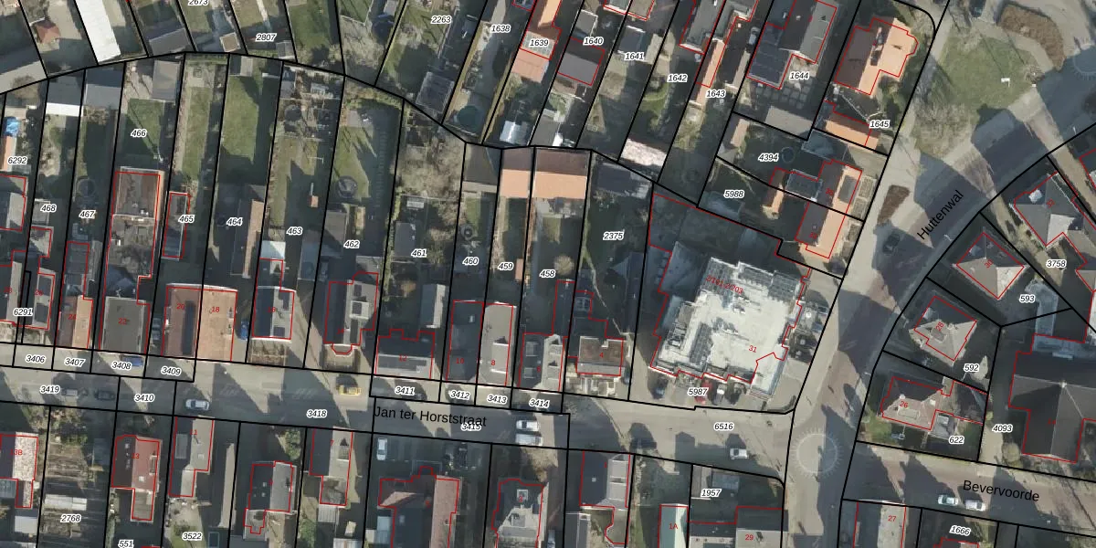 Gebruik de zoekbalk of klik op een perceel om informatie over het perceel te bekijken.
