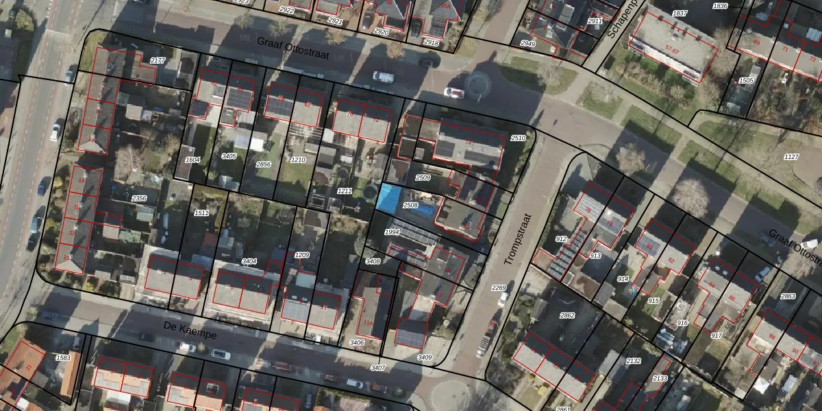 Gebruik de zoekbalk of klik op een perceel om informatie over het perceel te bekijken.