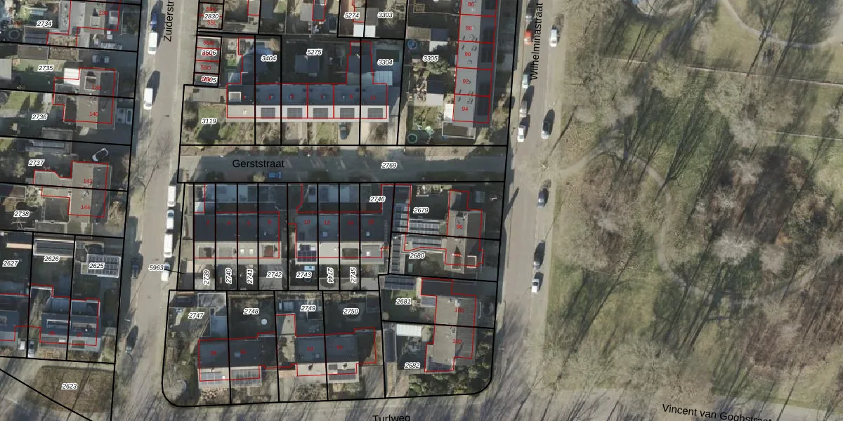 Gebruik de zoekbalk of klik op een perceel om informatie over het perceel te bekijken.
