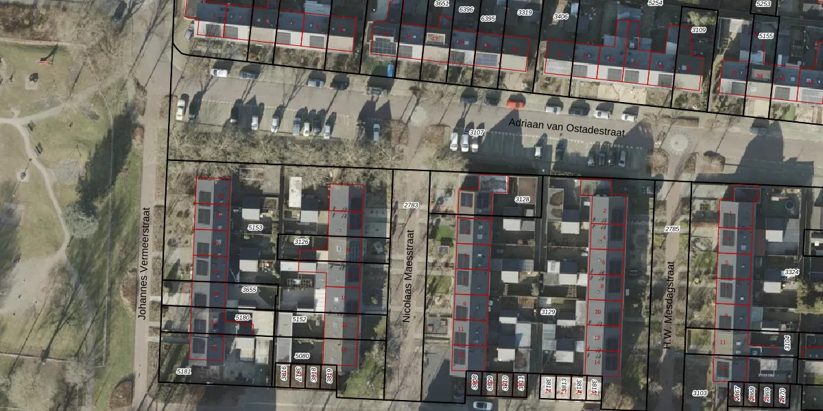 Gebruik de zoekbalk of klik op een perceel om informatie over het perceel te bekijken.