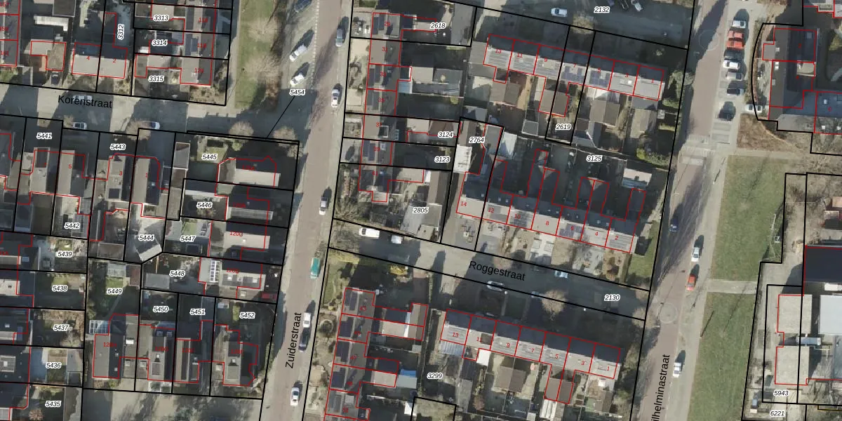 Gebruik de zoekbalk of klik op een perceel om informatie over het perceel te bekijken.