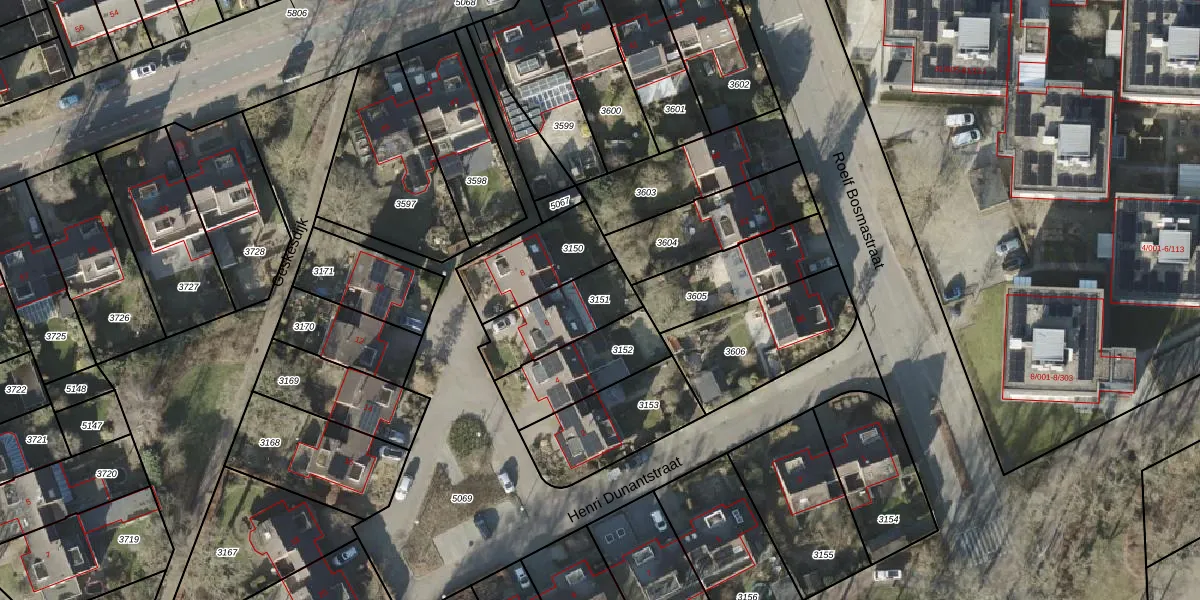 Gebruik de zoekbalk of klik op een perceel om informatie over het perceel te bekijken.