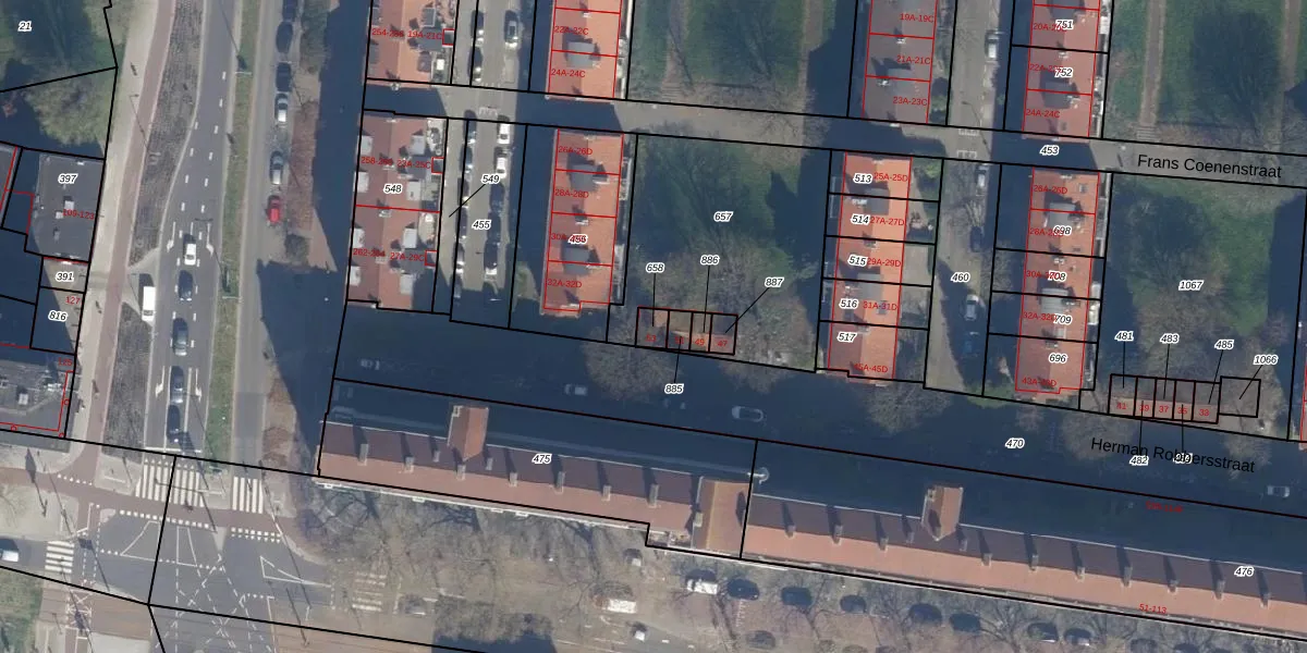 Gebruik de zoekbalk of klik op een perceel om informatie over het perceel te bekijken.
