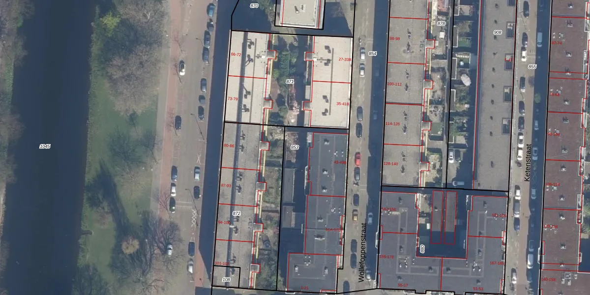 Gebruik de zoekbalk of klik op een perceel om informatie over het perceel te bekijken.