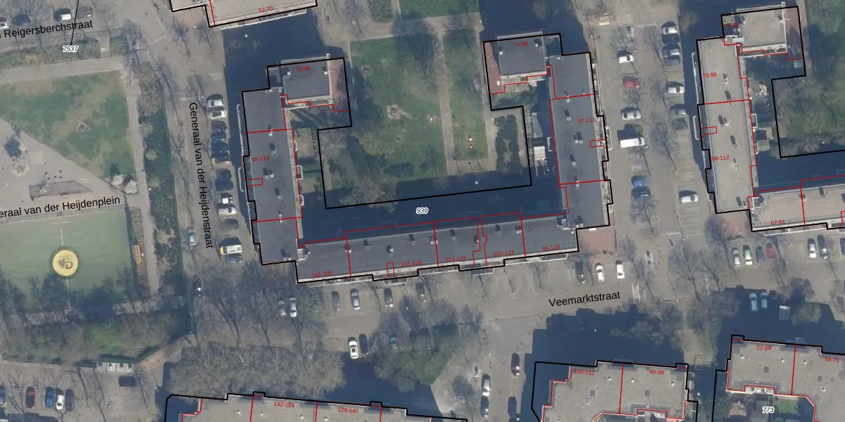 Gebruik de zoekbalk of klik op een perceel om informatie over het perceel te bekijken.