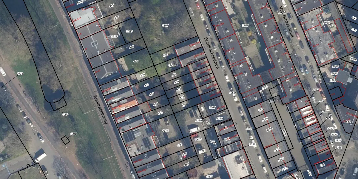 Gebruik de zoekbalk of klik op een perceel om informatie over het perceel te bekijken.