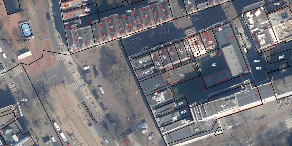 Gebruik de zoekbalk of klik op een perceel om informatie over het perceel te bekijken.
