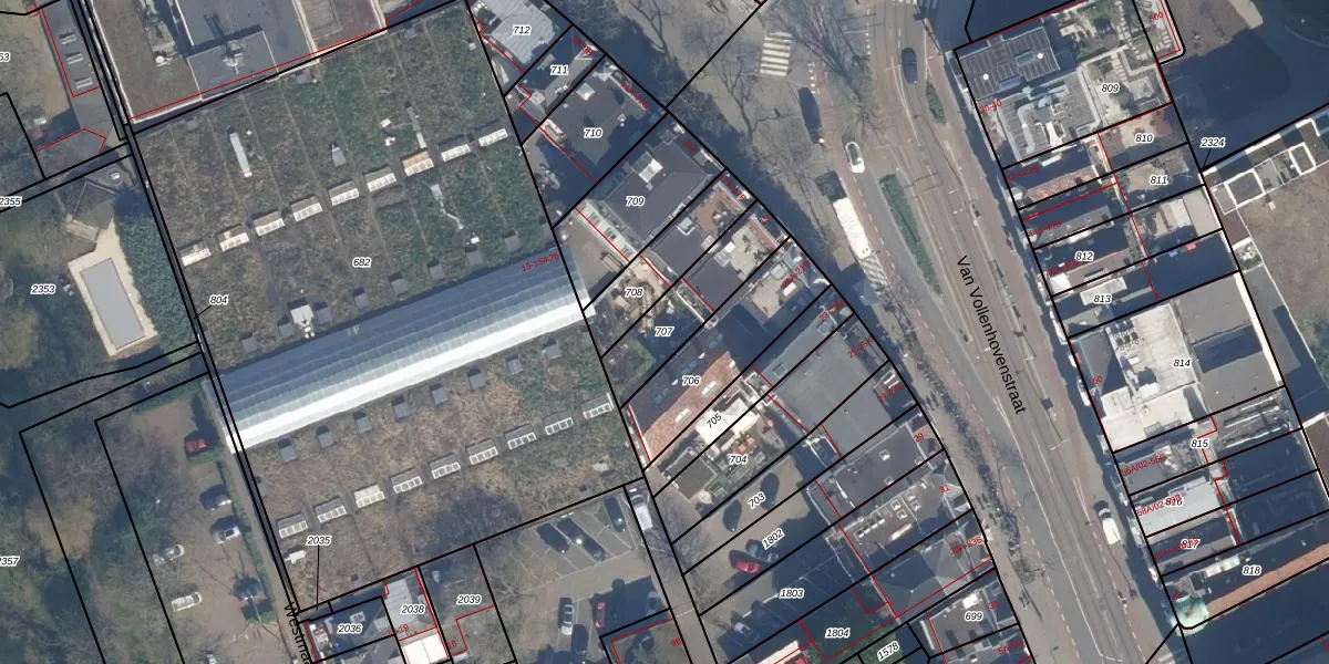 Gebruik de zoekbalk of klik op een perceel om informatie over het perceel te bekijken.