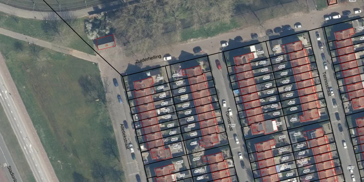 Gebruik de zoekbalk of klik op een perceel om informatie over het perceel te bekijken.