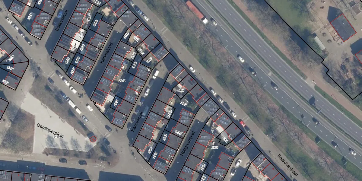 Gebruik de zoekbalk of klik op een perceel om informatie over het perceel te bekijken.
