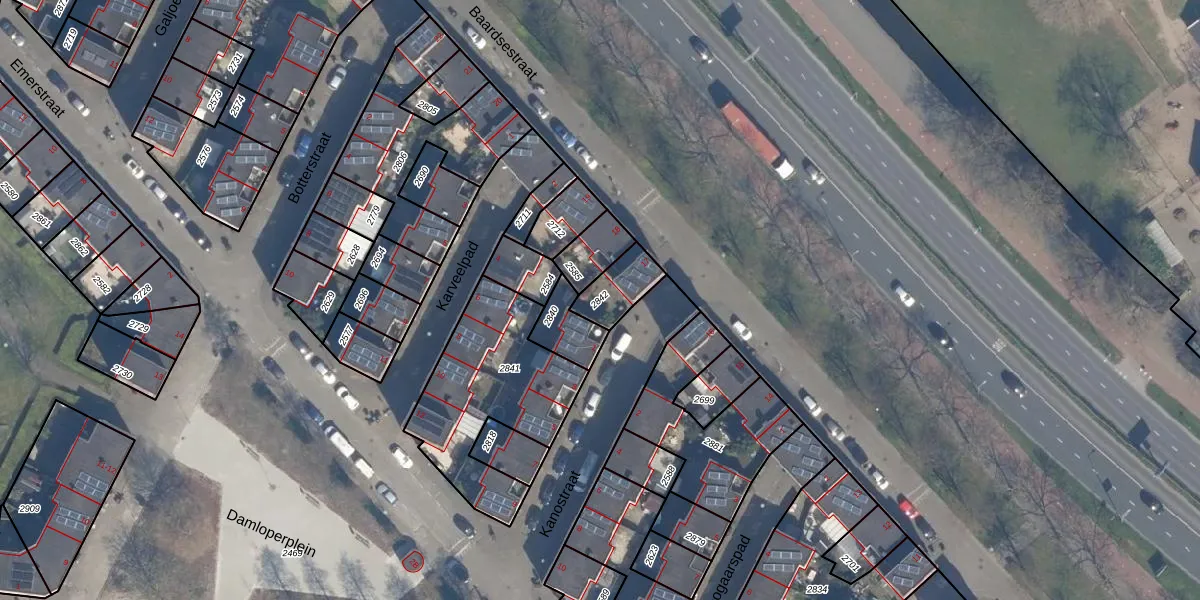 Gebruik de zoekbalk of klik op een perceel om informatie over het perceel te bekijken.