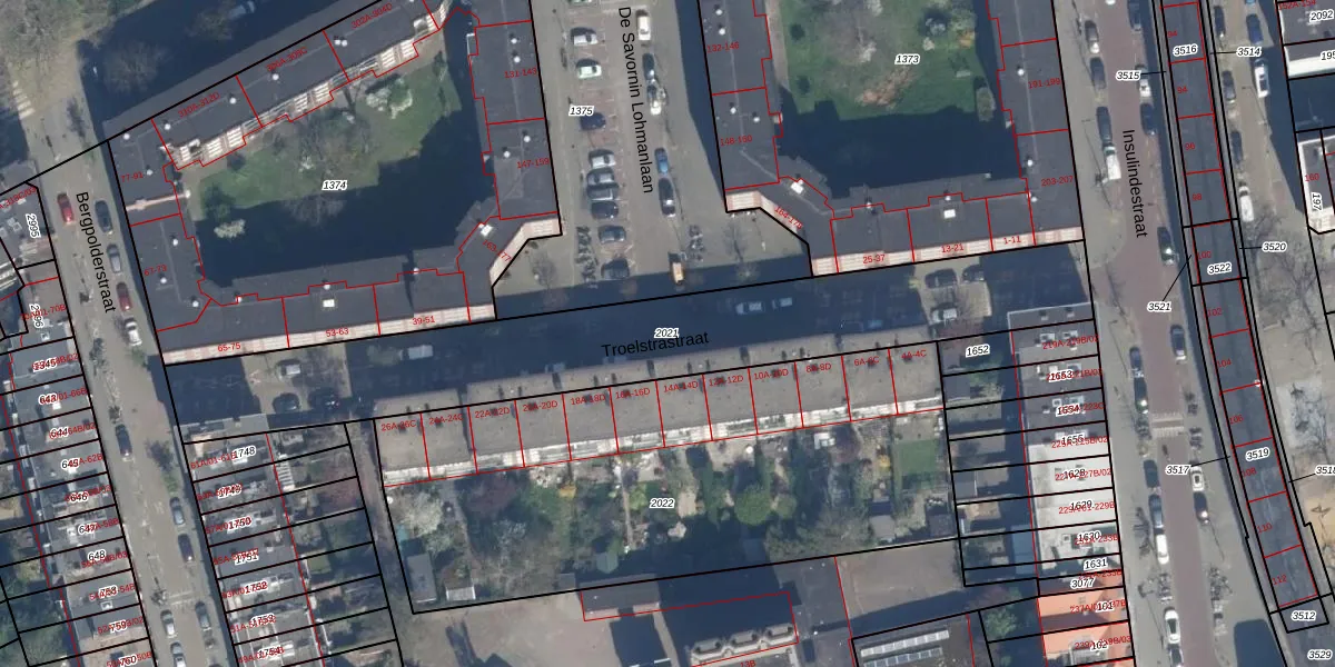 Gebruik de zoekbalk of klik op een perceel om informatie over het perceel te bekijken.
