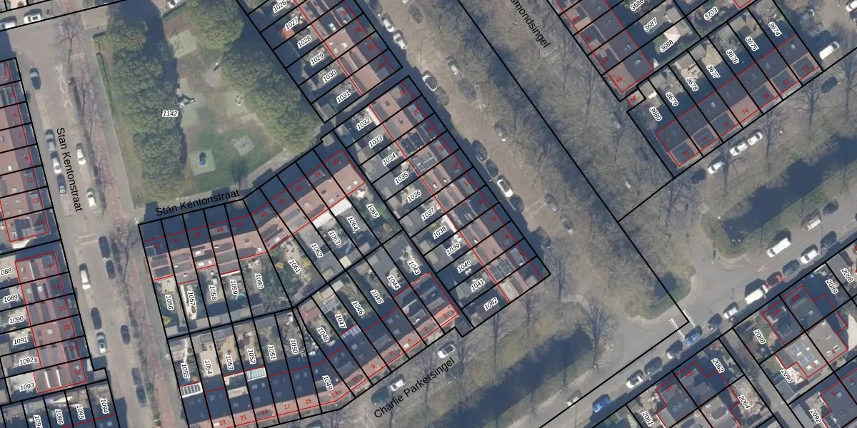 Gebruik de zoekbalk of klik op een perceel om informatie over het perceel te bekijken.