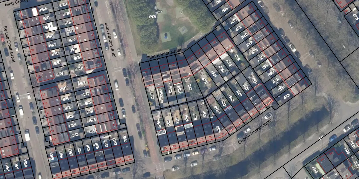 Gebruik de zoekbalk of klik op een perceel om informatie over het perceel te bekijken.