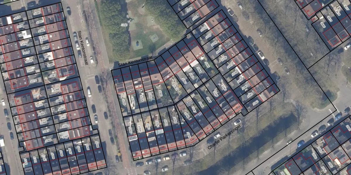 Gebruik de zoekbalk of klik op een perceel om informatie over het perceel te bekijken.