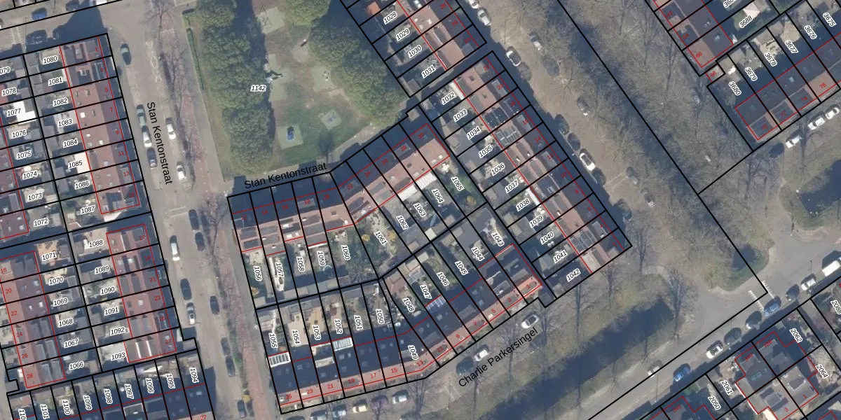 Gebruik de zoekbalk of klik op een perceel om informatie over het perceel te bekijken.