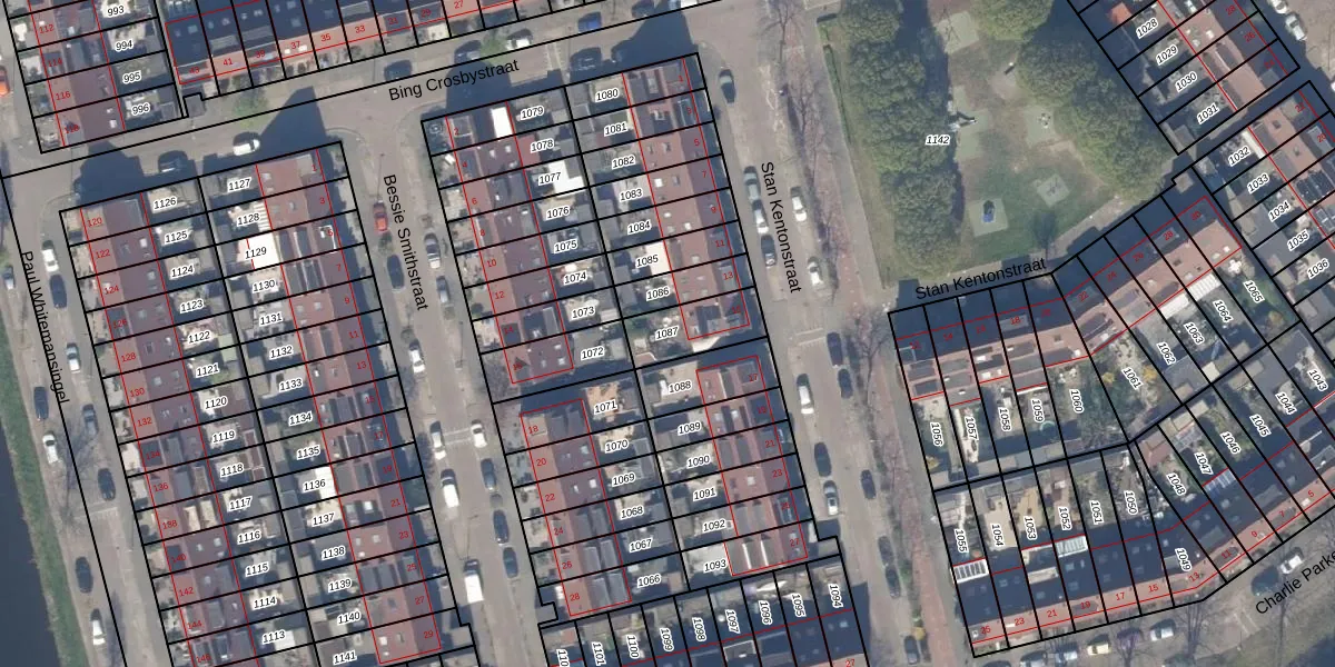 Gebruik de zoekbalk of klik op een perceel om informatie over het perceel te bekijken.