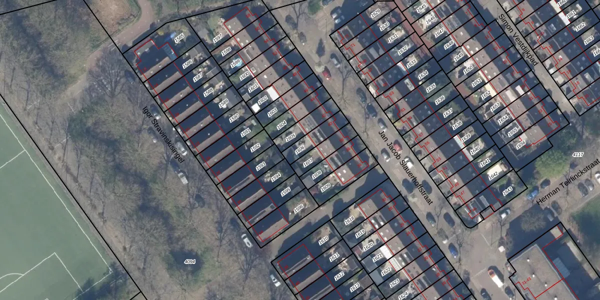 Gebruik de zoekbalk of klik op een perceel om informatie over het perceel te bekijken.