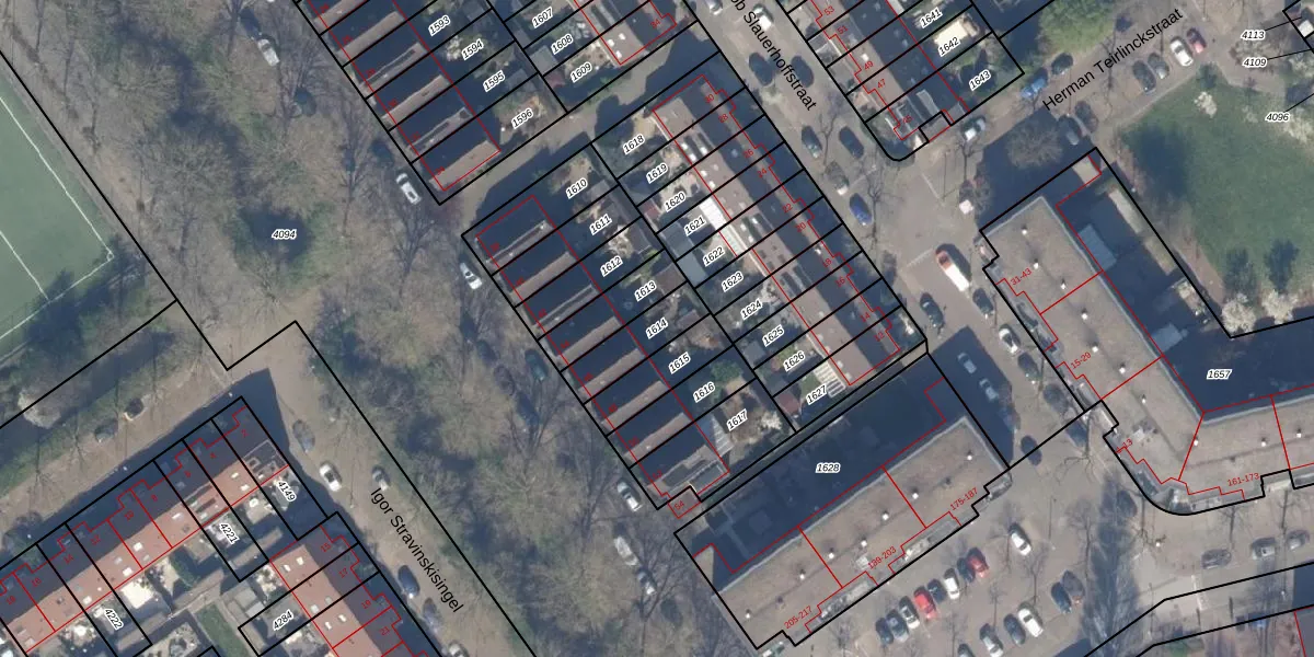 Gebruik de zoekbalk of klik op een perceel om informatie over het perceel te bekijken.