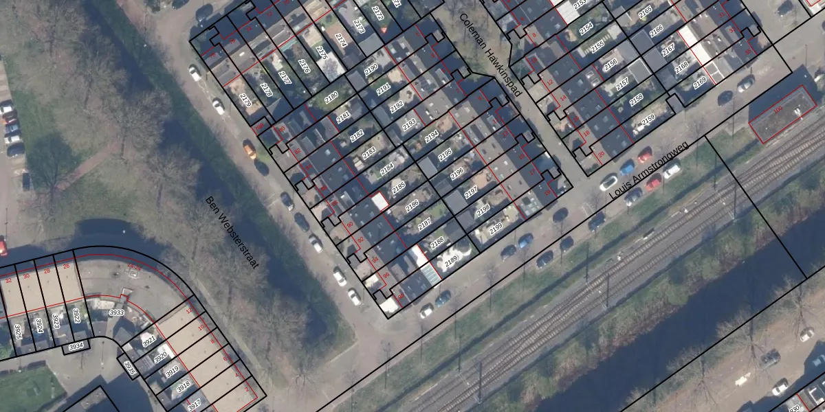 Gebruik de zoekbalk of klik op een perceel om informatie over het perceel te bekijken.