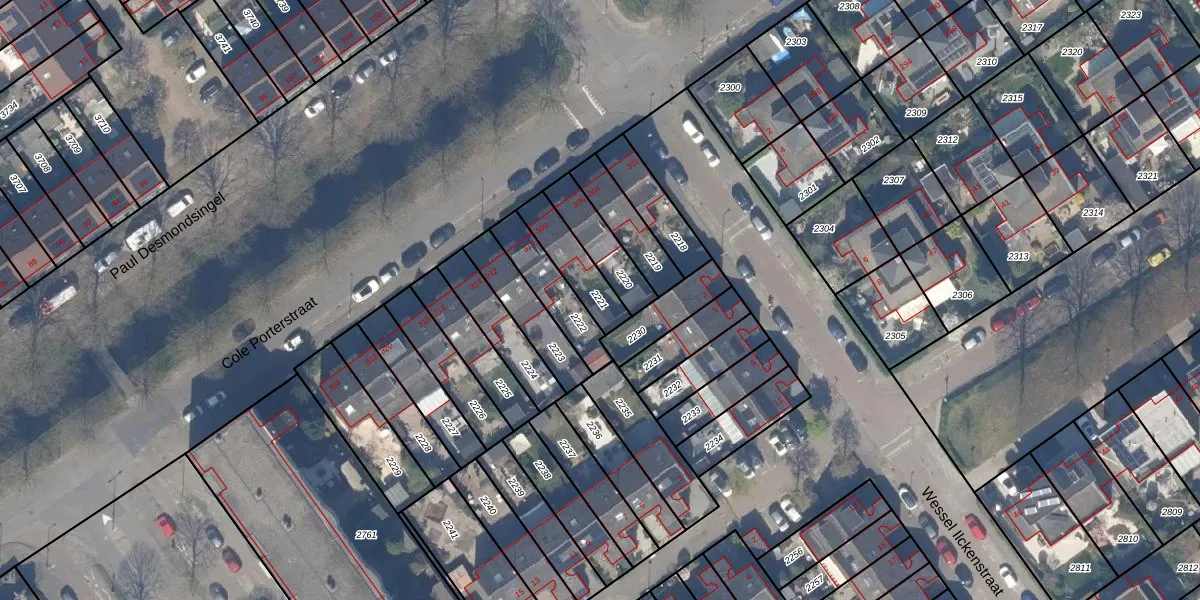 Gebruik de zoekbalk of klik op een perceel om informatie over het perceel te bekijken.