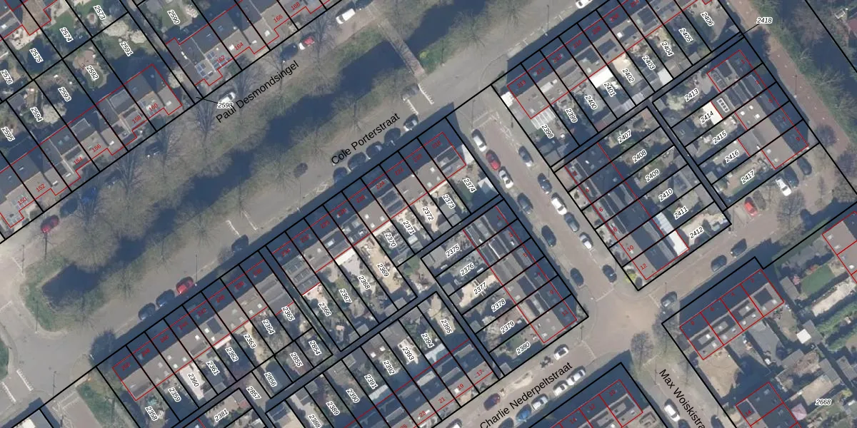 Gebruik de zoekbalk of klik op een perceel om informatie over het perceel te bekijken.