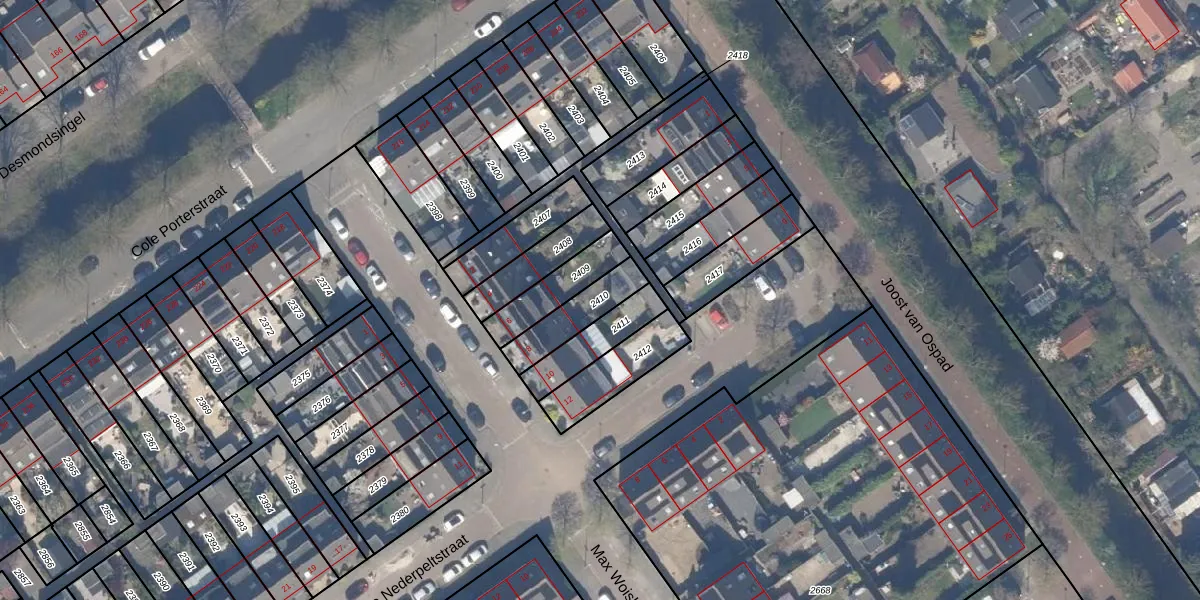 Gebruik de zoekbalk of klik op een perceel om informatie over het perceel te bekijken.
